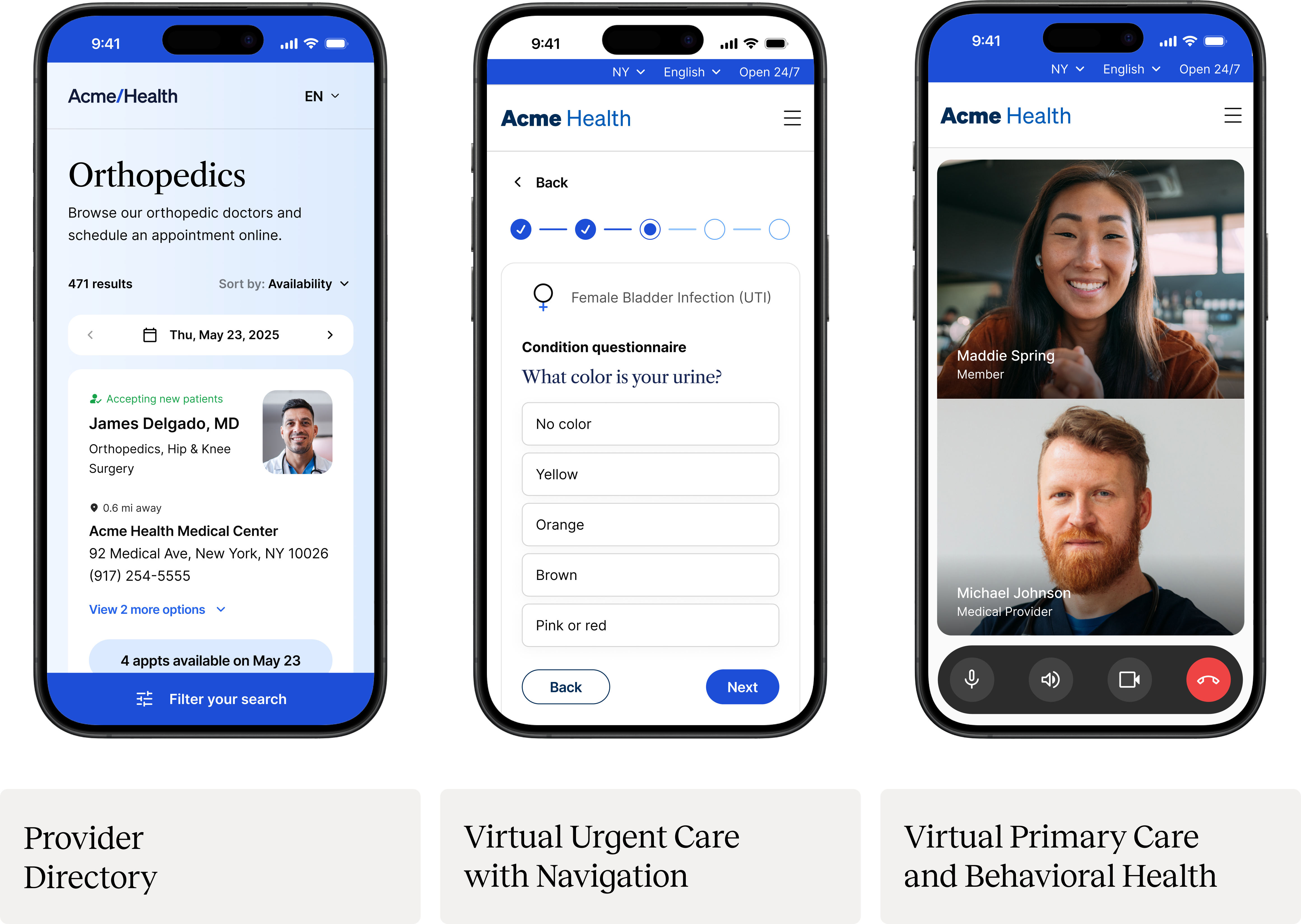 Virtual urgent care with navigation: On-demand virtual urgent care paired with intelligent routing to in-person or community-based care when needed. An asynchronous-first model directs patients to the appropriate level of care while lowering costs and reducing clinical burden.